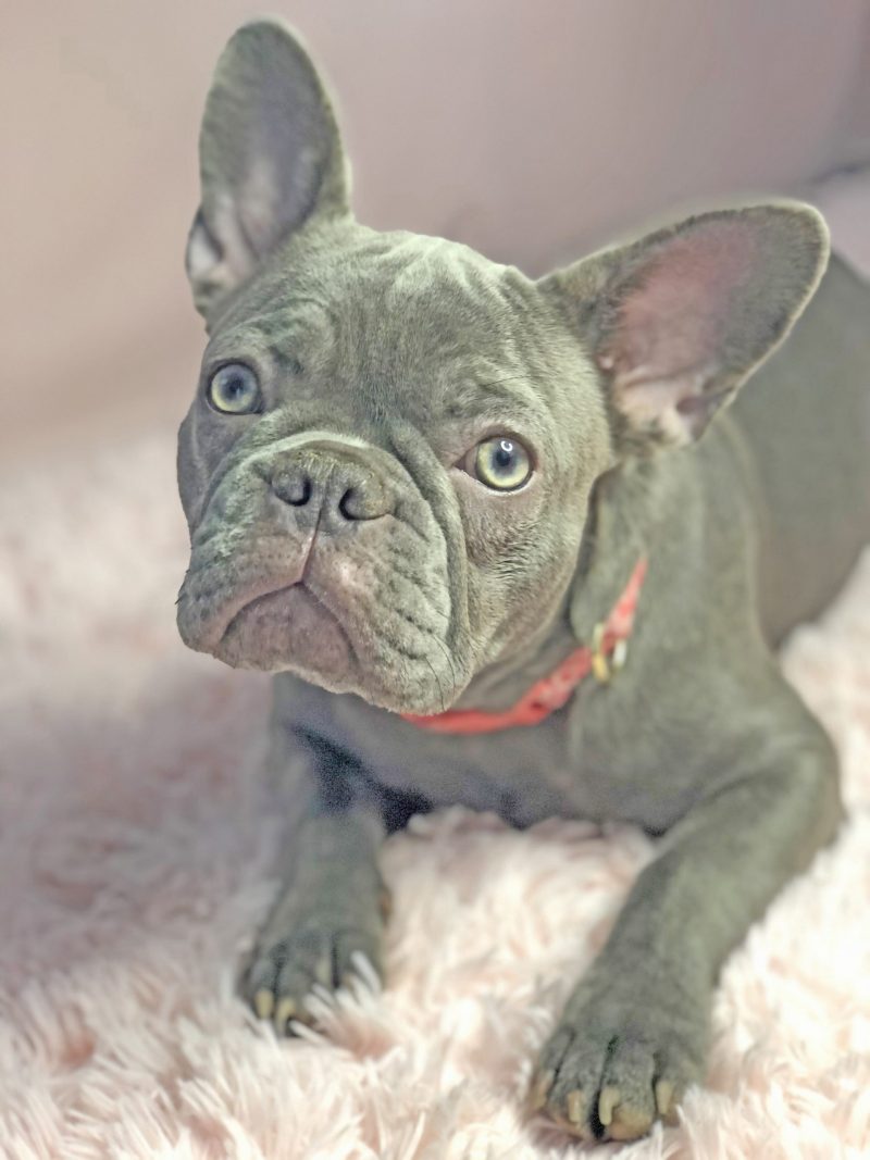 Lilac Lexi is a beautiful, fun, and healthy Frenchie! Her colors are captivating and we cannot wait to see what wonderful pups she will produce. Lexi has an incredible personality. She is a fun-loving dog that loves to play and cuddle. Lexi spends her days frolicking around with her best friend, Hazel.